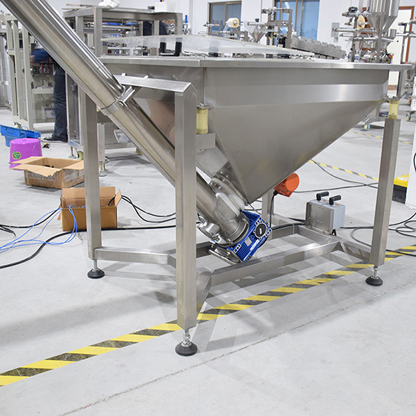 自動稱重粉末包裝機是將粉末類型的物料通過螺桿提升機直接送入螺旋計量秤料倉,按照設定的重量,完成自動計量、充填、自動包裝封口、成品輸送。